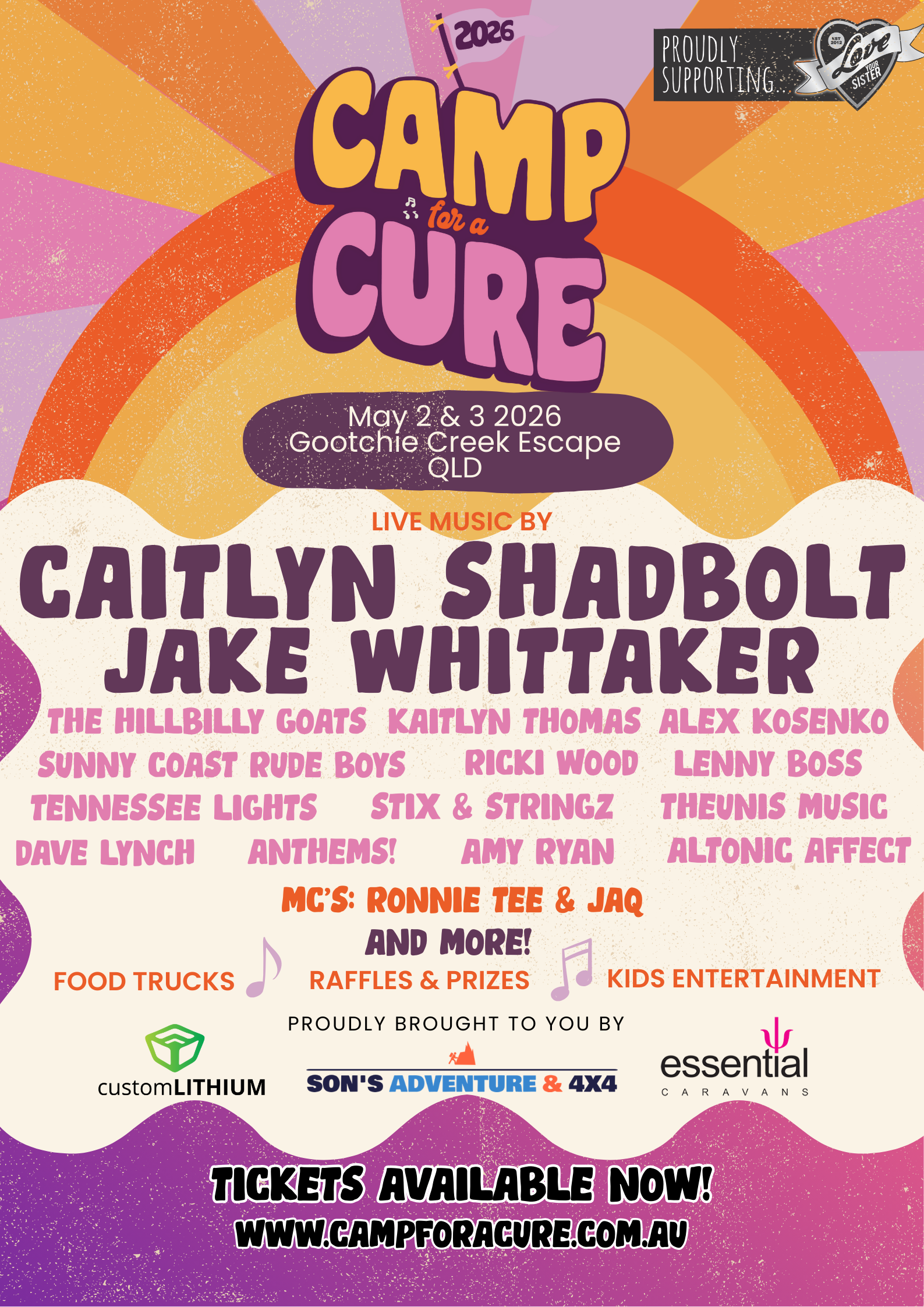 Camp for a Cure is a unique camp out experience combining the power of community, music and caravanning and camping to raise funds for cancer research.